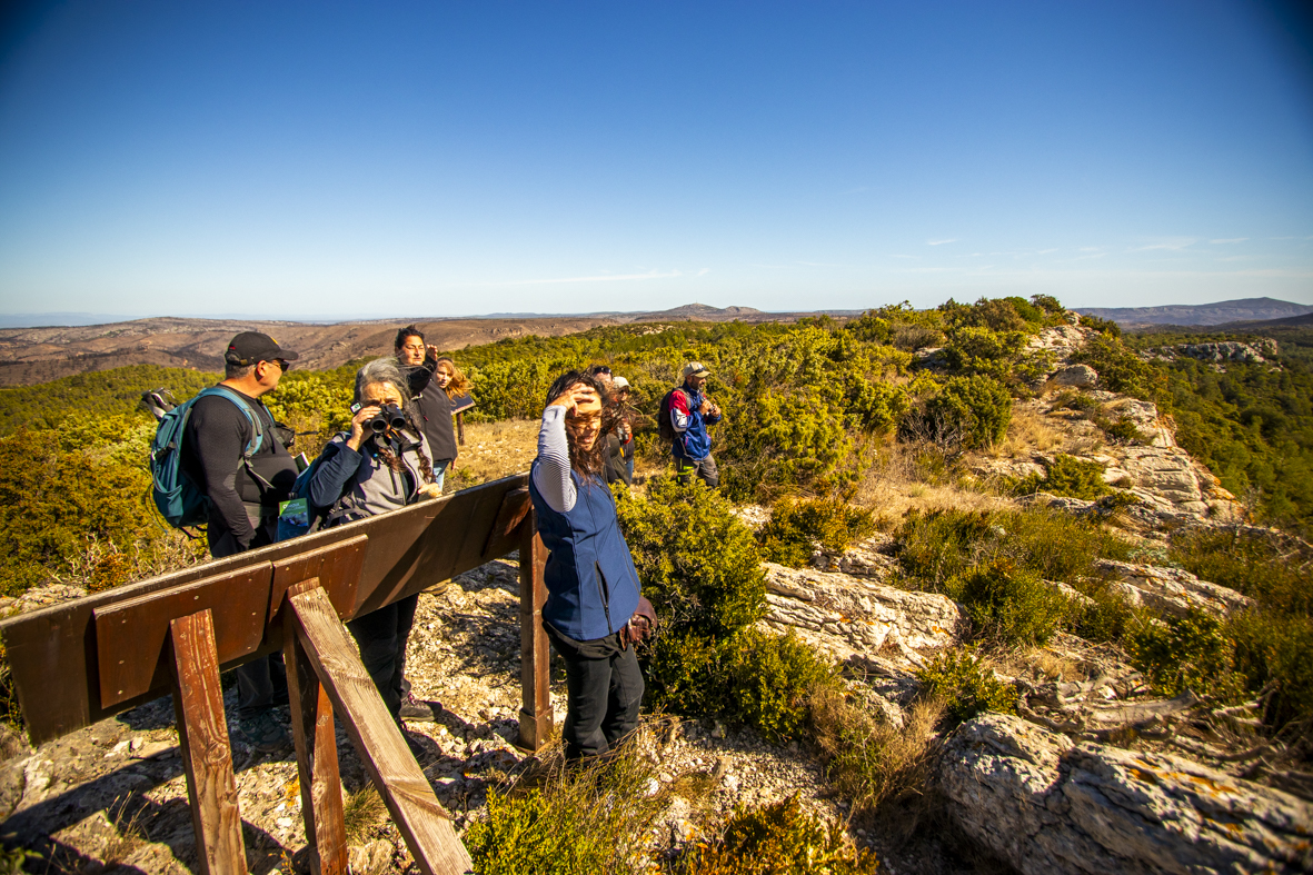 Aujourd’hui, nous avons sollicité Aurore, intervenante Natura 2000 au sein du Parc Naturel Régional des Corbières Fenouillèdes, qui nous a guidé sur la Randonnée du Géologue, sur les hauteurs d’Albas. Observer les oiseaux — et nous en avons aperçu quelques-uns — c’est aussi chercher à comprendre leurs modes de déplacement, leurs sources de nourriture, et les conditions nécessaires à leur présence continue, que ce soit pour l’hiver ou lors de leur retour migratoire.