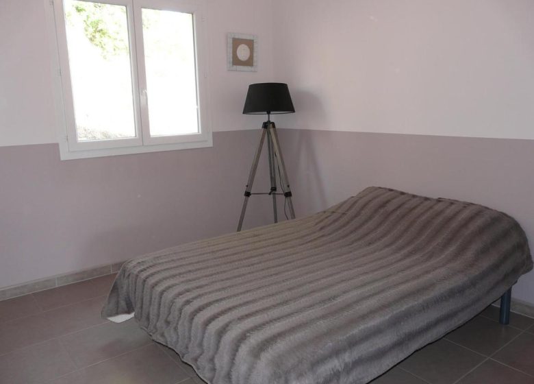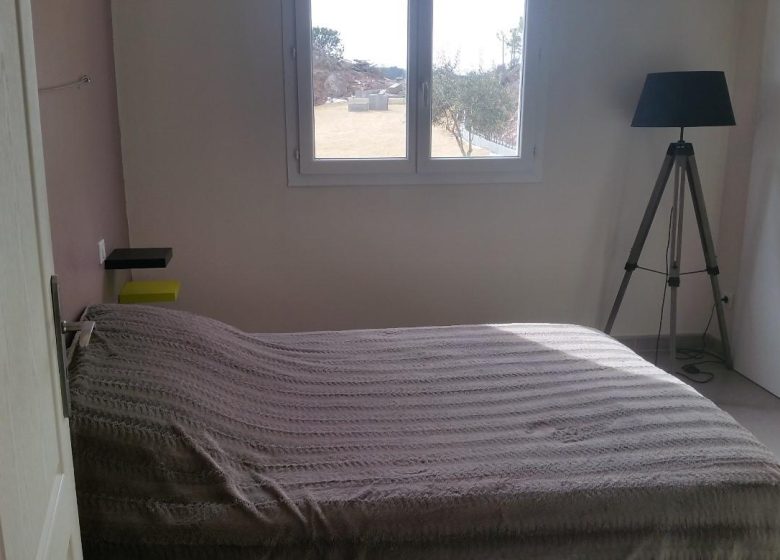 Une chambre avec un lit en 140 avec salle d'eau privative.