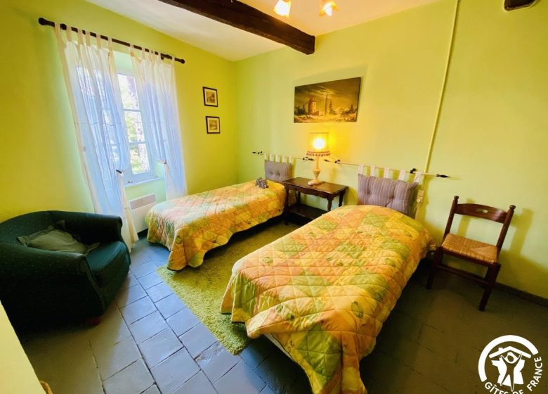 Sur un domaine viticole en activité, ensemble de 3 gîtes, avec piscine commune et espace extérieur à partager, coin détente au bord de la piscine avec salon de jardin et barbecue. Buanderie commune avec lave linge et sèche linge. Situé sur la route des châteaux du Pays Cathare et des abbayes de Lagrasse et de Fontfroide. Sur place nombreuses promenades pédestres et Vtt sur le Mont Alaric. Stationnement sur le domaine. Dégustations des vins du domaine possible au caveau. Gîte situé au premier étage comprenant: un séjour-cuisine. 2 chambres (1 lit en 140, 2 lits en 90). Salle d'eau avec WC. Au deuxième étage une chambre avec 2 lits en 90. Draps et ménage de fin de séjour en option. Parking couvert dans la cour du domaine.