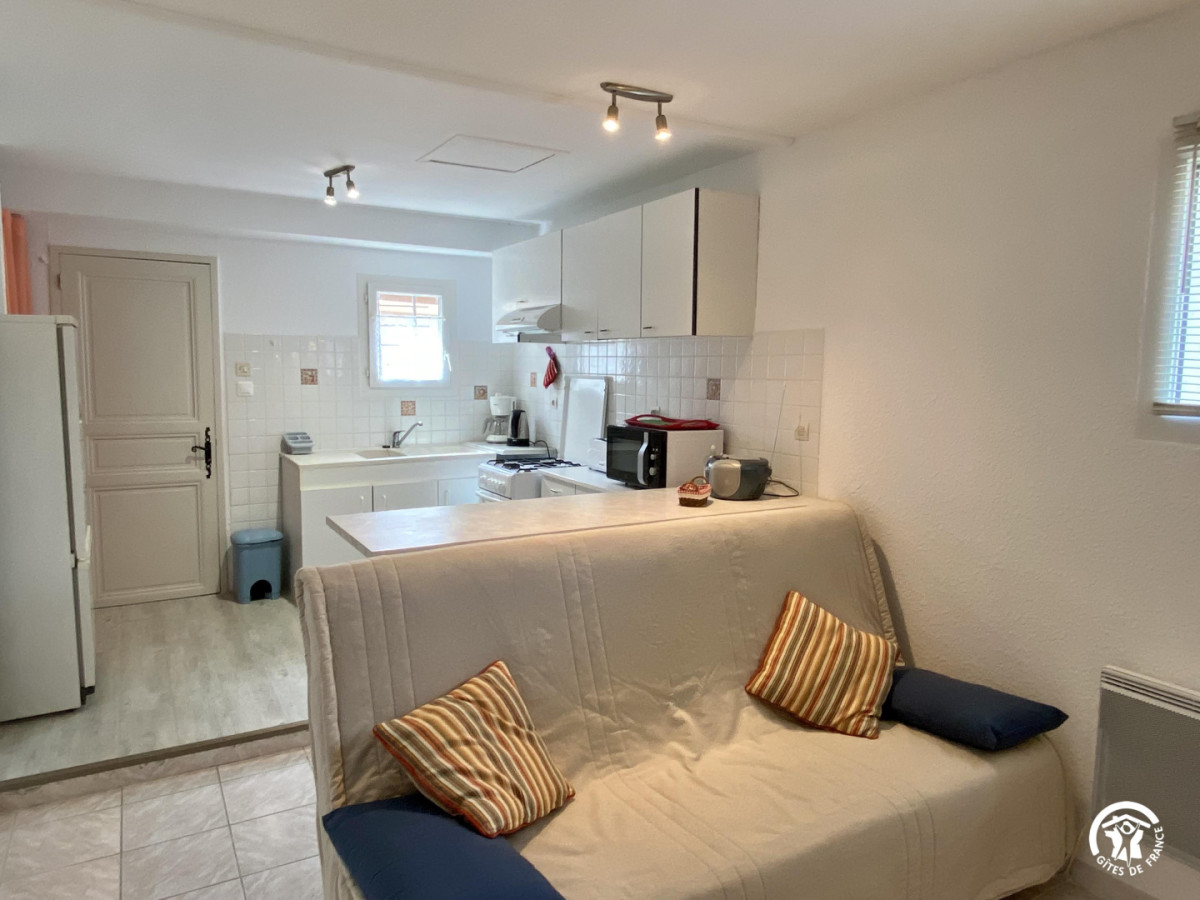 Vous profiterez de la terrasse mitoyenne au jardin des propriétaires avec salon de jardin et barbecue. Estivales de Camplong en juillet et aout, spectacles musique et theatre gratuit. Commerces et restaurant au village. Le gîte comprend: un séjour-cuisine avec canapé. Une chambre avec 1 lit en 140, Salle d'eau et WC. Chauffage électrique inclus. Accès à la piscine surveillée et au tennis municipal gratuits environ à 200m. Climatisation dans la pièce principale.