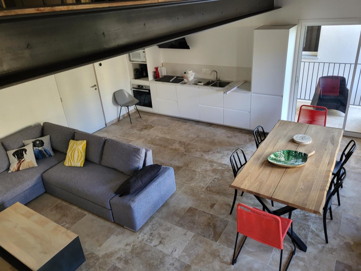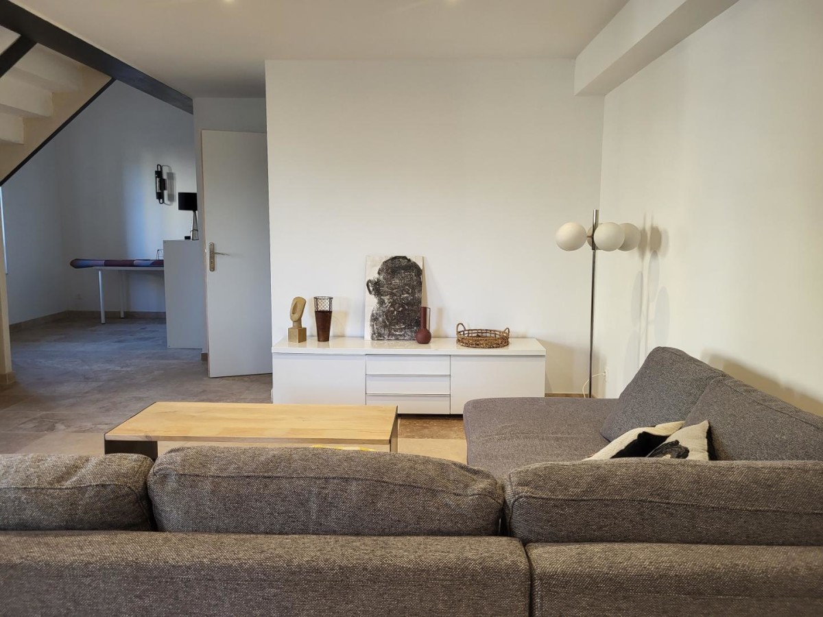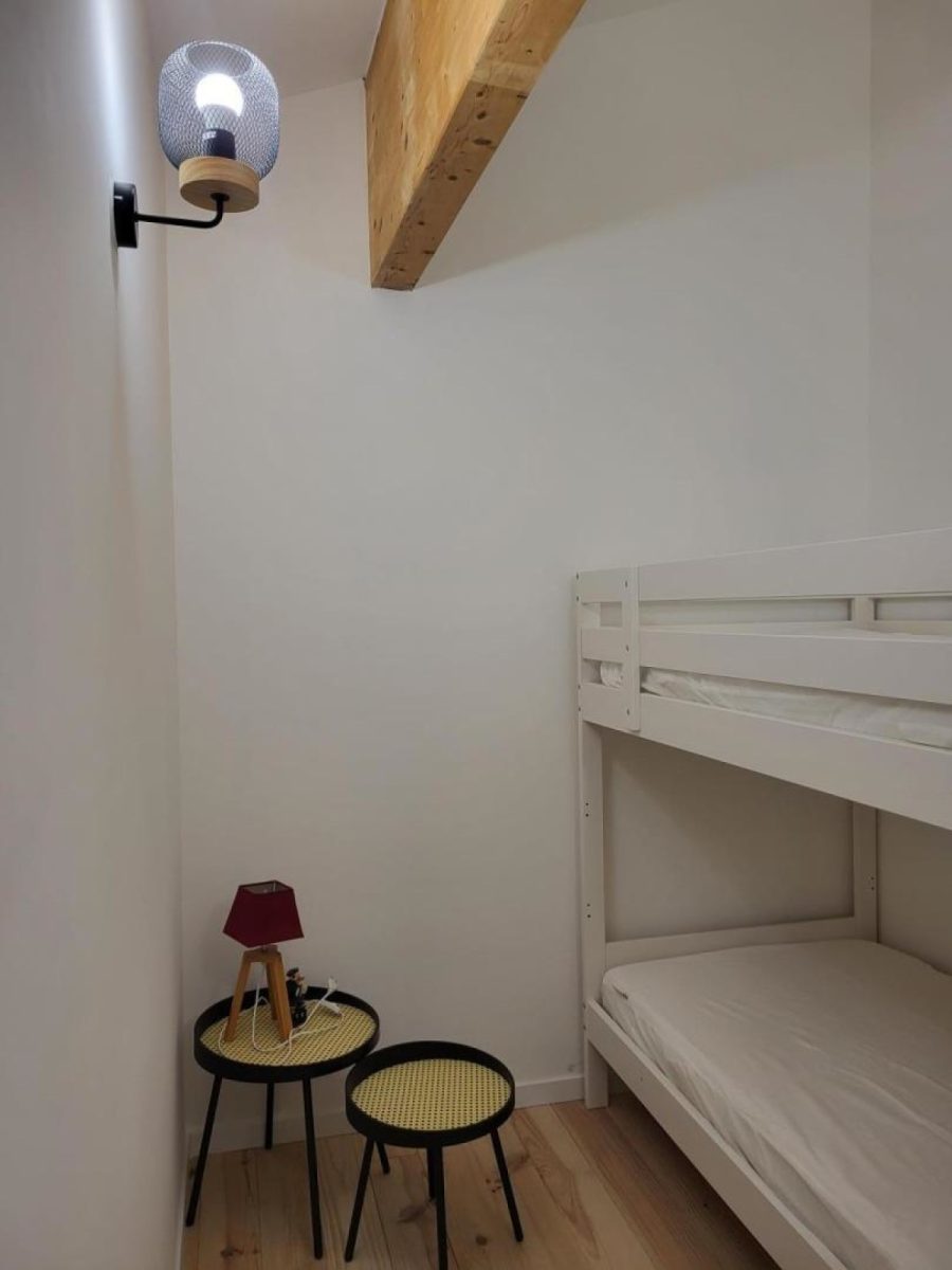 À l'étage principal, vous disposez d'une pièce à vivre lumineuse avec salon et séjour-cuisine ouverte, parfaitement équipée : four, micro-ondes, plaque à induction, lave-vaisselle, réfrigérateur, congélateur, bouilloire et machine Nespresso. Une salle d'eau avec douche à l'italienne et WC complète cet espace.