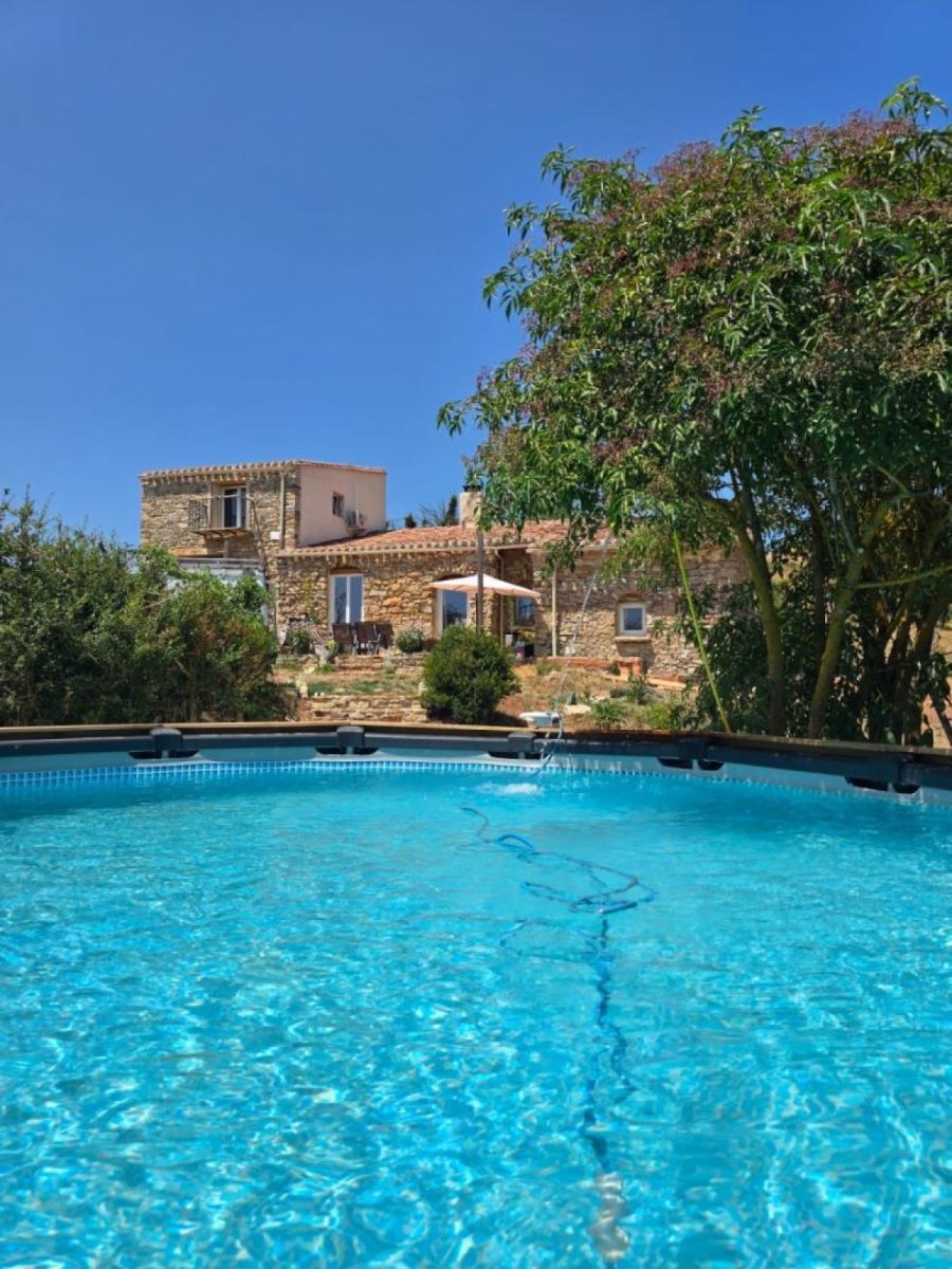 Depuis la terrasse au rez de chaussée vous profiterez de la piscine hors sol et privée (diamètre 4.70m, profondeur 1.30m).