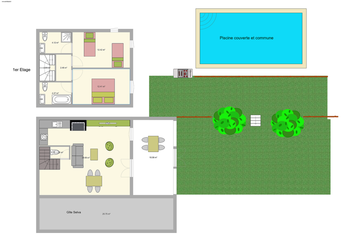 Sur place piscine commune et couverte (10x4 m, prof. 2 m. chauffée de mai à octobre).