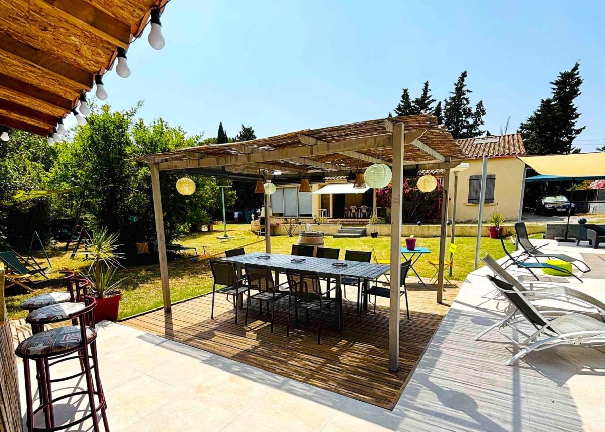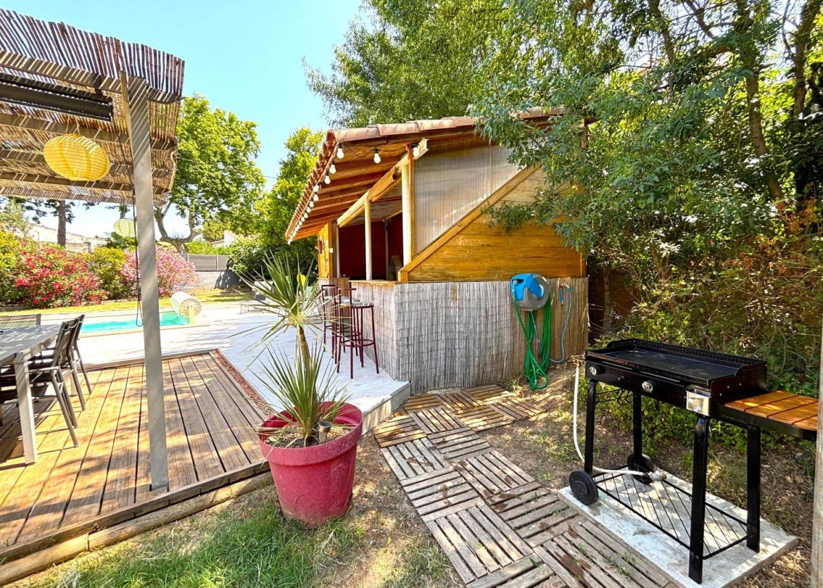 Sur un terrain clos, cette villa indépendante vous accueille dans un cadre propice à la détente. Le grand jardin, équipé d'un salon de jardin et d'un barbecue, invite à la convivialité, tandis que la piscine privative sécurisée (9 m x 4,20 m – 1,40 m de prof.) promet de belles journées ensoleillées.