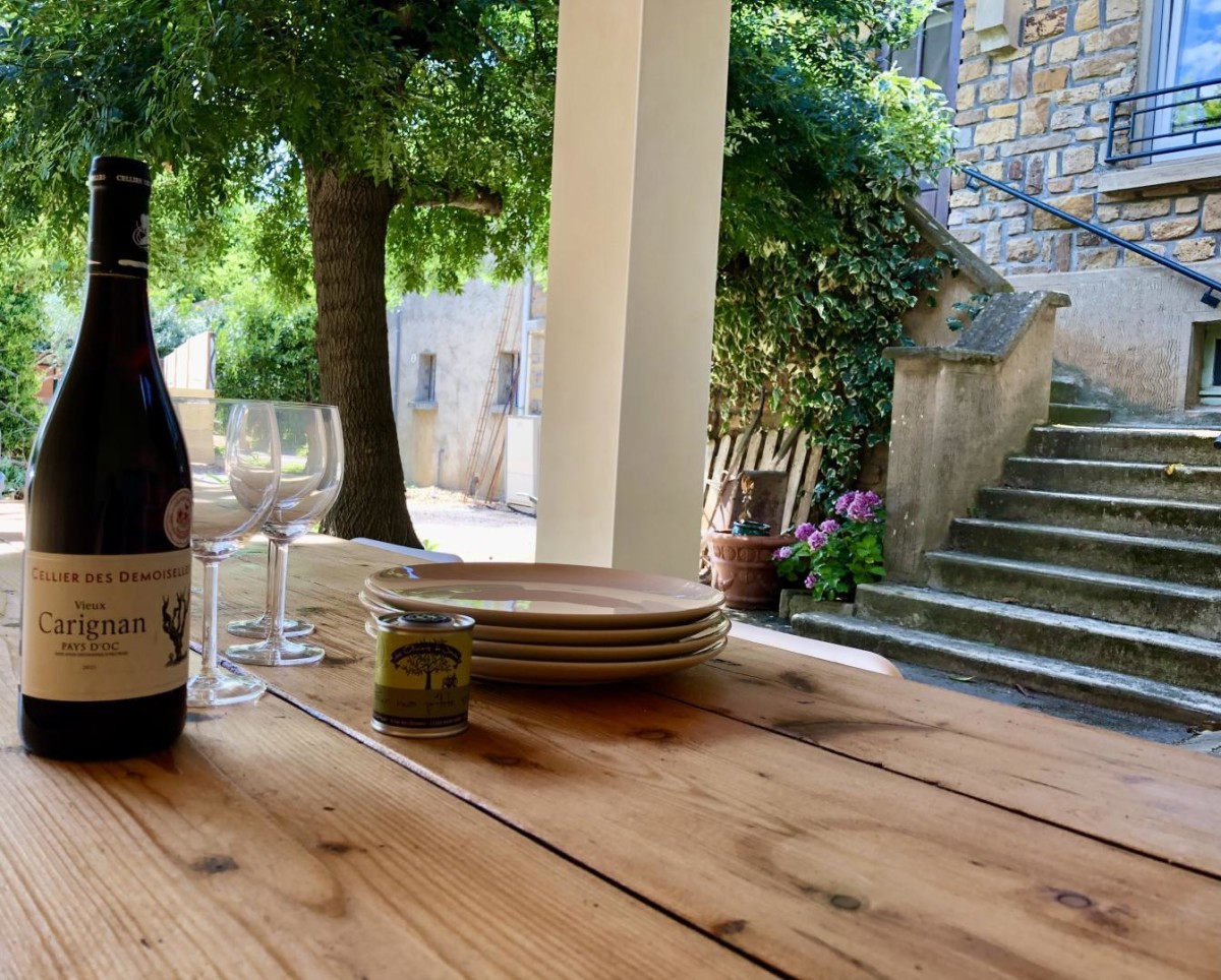 Cave à vin à disposition avec quelques bouteilles de notre production (en supplément - à régler sur place).