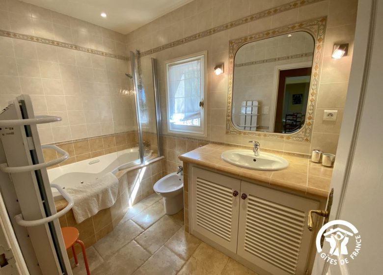 Le parc de 3600 m² entièrement clos par de hauts murs propose de beaux espaces paysagers et ombragés, une grande piscine (11mx5m) partagée avec les chambres d'hôtes et une place de parking sécurisée mise à disposition gratuitement aux résidents.