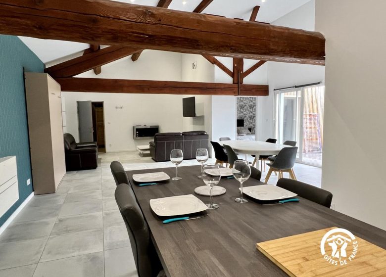Bienvenue au Domaine Nature et Saveurs ! Ici, au cœur d'un ancien domaine viticole, vous séjournerez entre vignes et garrigue, abbayes et châteaux du pays cathare. Gasparets, petit hameau de Boutenac, village typique des Corbières, offre à ses visiteurs un cadre idéal pour la détente et la promenade (environ 20 km de pistes forestières). Vous pourrez visiter par exemple la vieille tour carrée ou l’église St Mamès. Vous découvrirez au détour des sentiers un territoire riche pour sa faune et sa flore. Pour les amateurs de vins, vous êtes au cœur de l'appellation Corbières et de nombreux caveaux de dégustation vous ouvriront leurs portes. A proximité : l'abbaye de Fontfroide, le village de Lagrasse et les plages de la Méditerranée. Au départ du gîte de nombreuses promenades pédestres et VTT sont possibles. Sur le domaine, le gîte la Grange bénéficie d'un parking clos et privatif avec borne électrique pour votre véhicule. Sont proposés sur place : 2 gîtes et 5 chambres d'hôtes. La terrasse, avec son salon de jardin, vous permettra de profiter des belles soirées estivales autour d'un bon repas proposé par la table d’hôtes. Sur le domaine, vous pourrez profiter des installations communes, du grand jardin paysager clos, du terrain de pétanque, de la table de ping-pong ou encore de la piscine commune de 4x8m, traitée au sel et couverte par un abri coulissant. Après quelques marches, vous entrerez dans le gîte La Grange qui vous proposera un spacieux séjour avec un espace détente équipé d’un téléviseur connecté, un espace cuisine avec électroménager intégré, une terrasse aménagée par un salon de jardin et une plancha électrique, un lit armoire en 160x200. Une première chambre offre un lit en 160x200, avec salle de bain attenante. La seconde chambre propose deux lits en 80x200, jumelables à la demande, équipée également de sa salle d’eau. Un W.C. indépendant complète les lieux. Draps, linge de toilette et ménage de fin de séjour inclus.