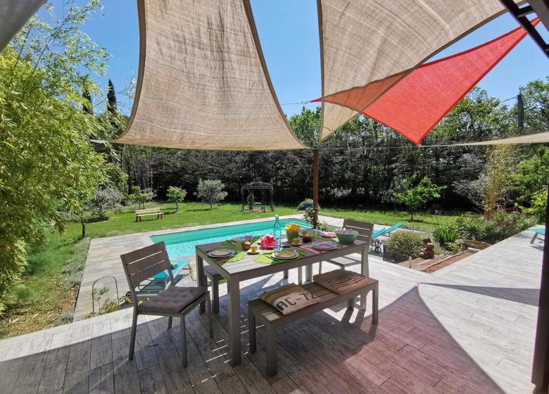 La propriété est entourée d'un parc entièrement aménagé de 5000 m², avec une mare de carpe koï, beaucoup de pins, oliviers, lauriers, lavande, ainsi qu'une pelouse naturelle bien entretenue. Cette région est très reconnue par ses excellents vins et ses multiples châteaux cathares (L'Abbaye de Fontfroide, PEYREPERTUSE la plus vaste citadelle du midi médiéval du moyen-age après la cité de Carcassonne). En voiture ou même en vélo, vous pourrez visiter la région et ses vignes incessantes des Corbières au coeur d'une nature toujours sauvage. Seulement à 20 minutes de Narbonne ou de l'étang de Bages et 30 min des plages, le village se trouve au milieu du Languedoc. Au village, tous les commerces epicerie, boulangerie, pharmacie, poste avec