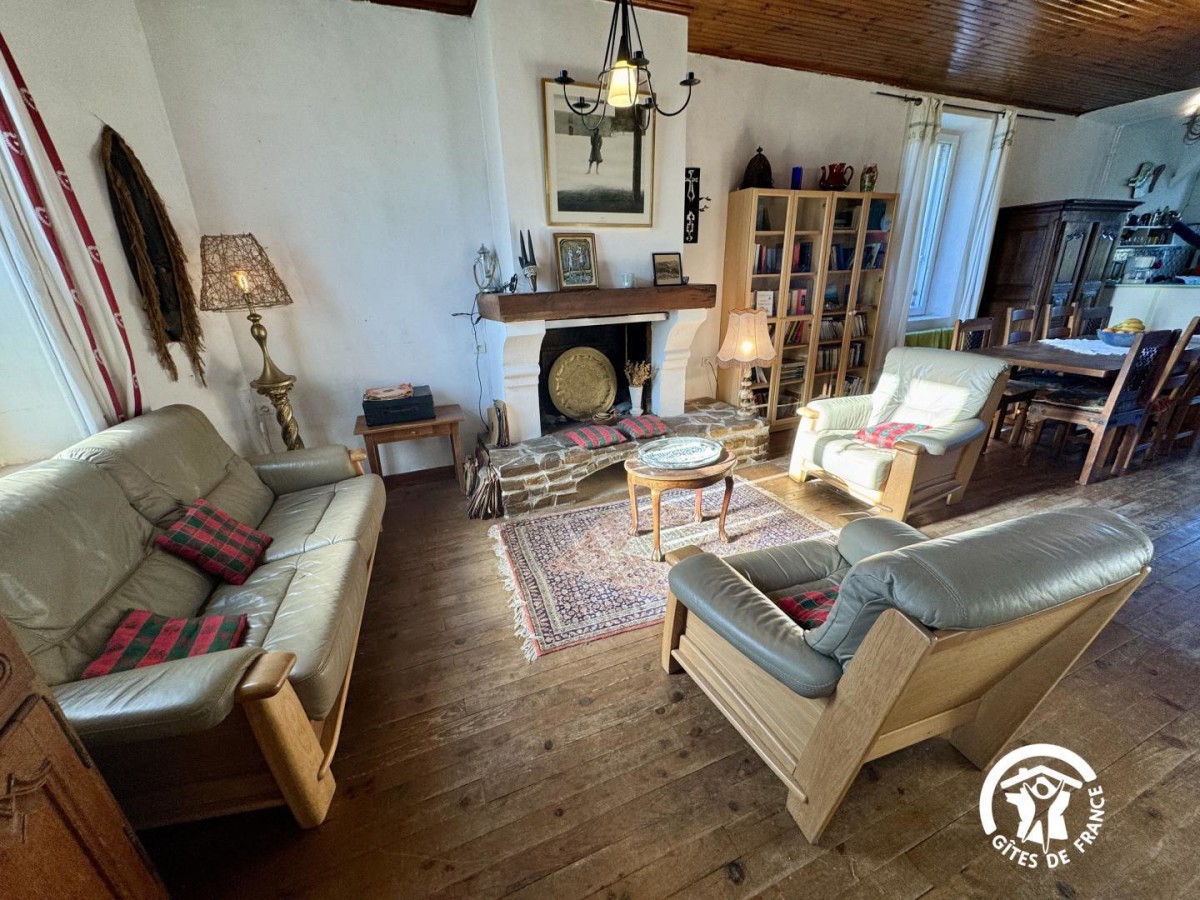 - Un séjour avec coin salon et cuisine ouverte toute équipée (frigo-congélateur, lave-vaisselle, cafetière à filtre, lave-linge, four, micro-ondes).
