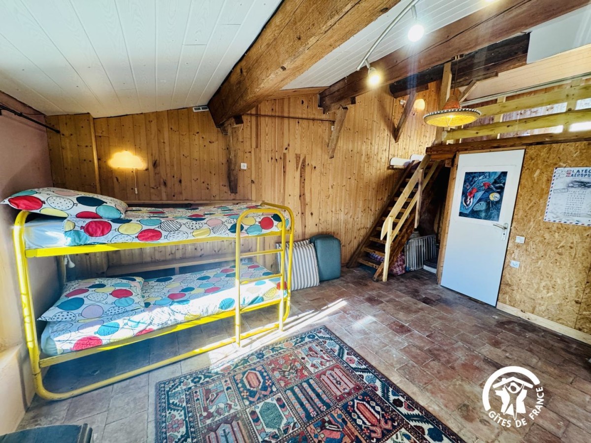 - Chambre 4: lit superposé 80x190cm + lit 90x190cm + mezzanine avec 2 matelas d'appoint.