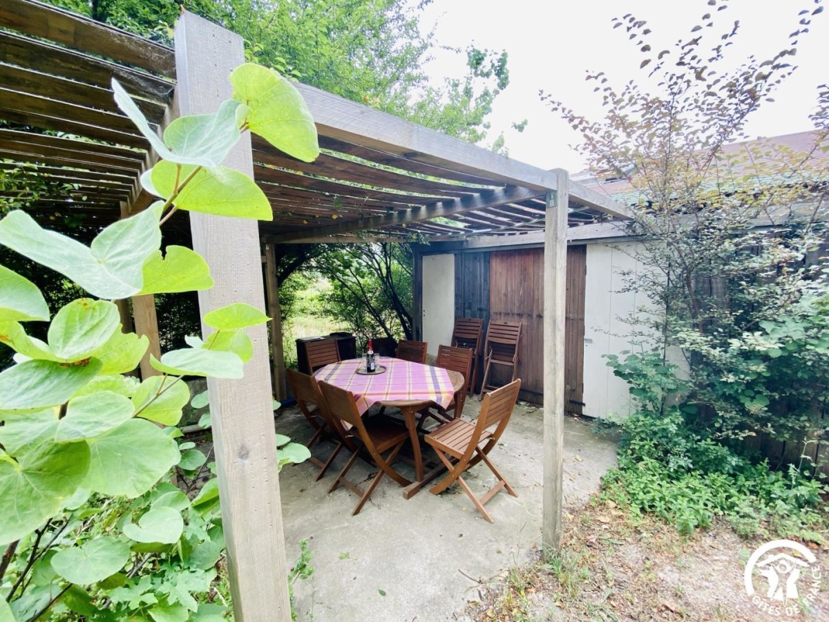 La maison dispose d’un jardin aménagé avec mobilier, parfait pour les repas en plein air et les moments de détente. À l’avant, une terrasse équipée d’un salon de détente permet de profiter pleinement des beaux jours et du calme du village. Le stationnement se fait dans la rue, à proximité immédiate du gîte.