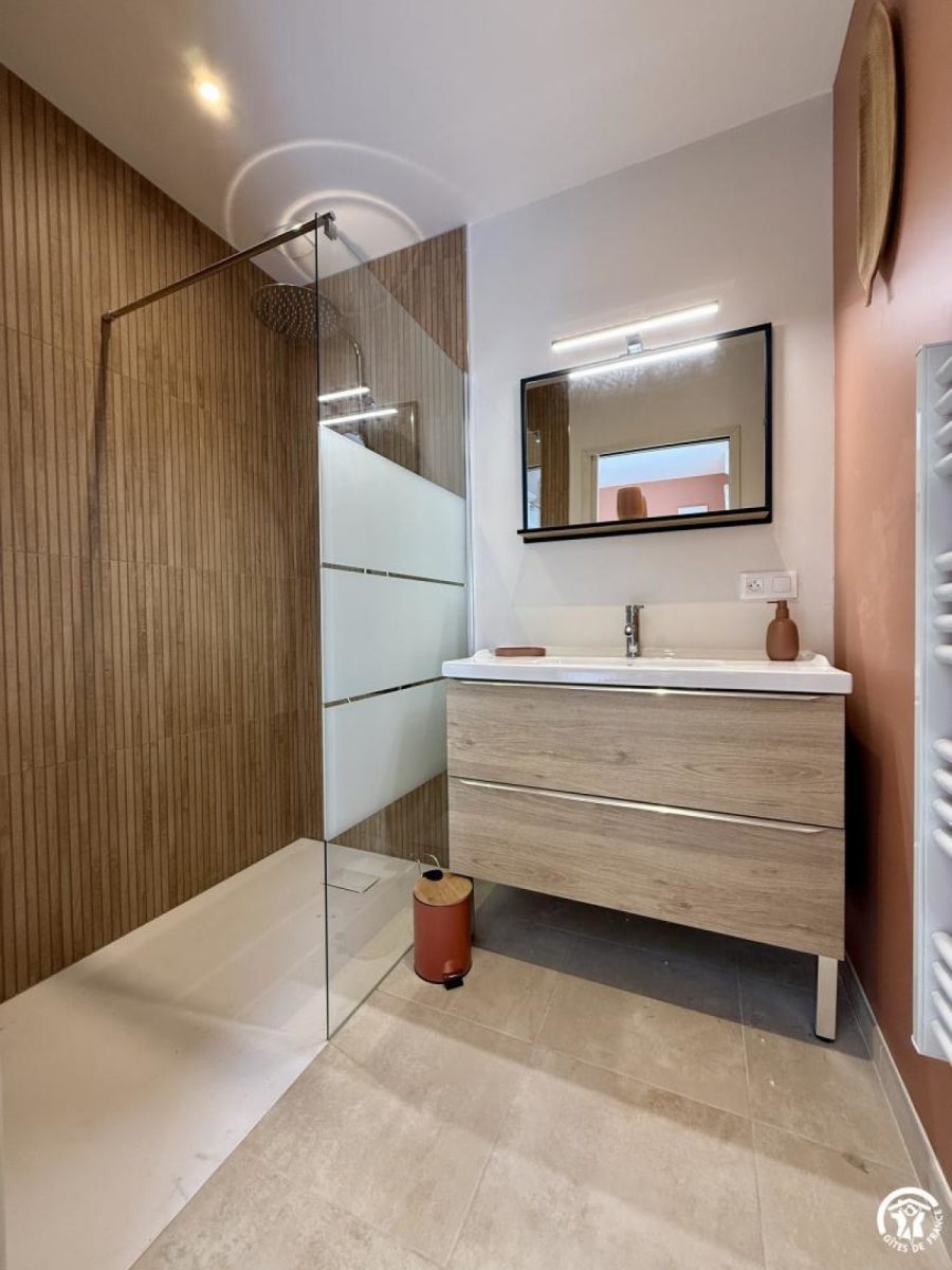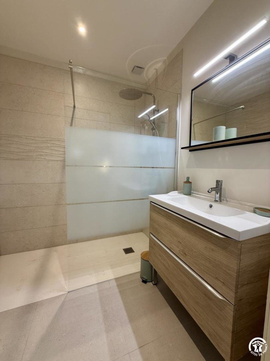 Les deux chambres, toutes de plain-pied, disposent chacune de leur salle d’eau privative, garantissant confort et intimité :