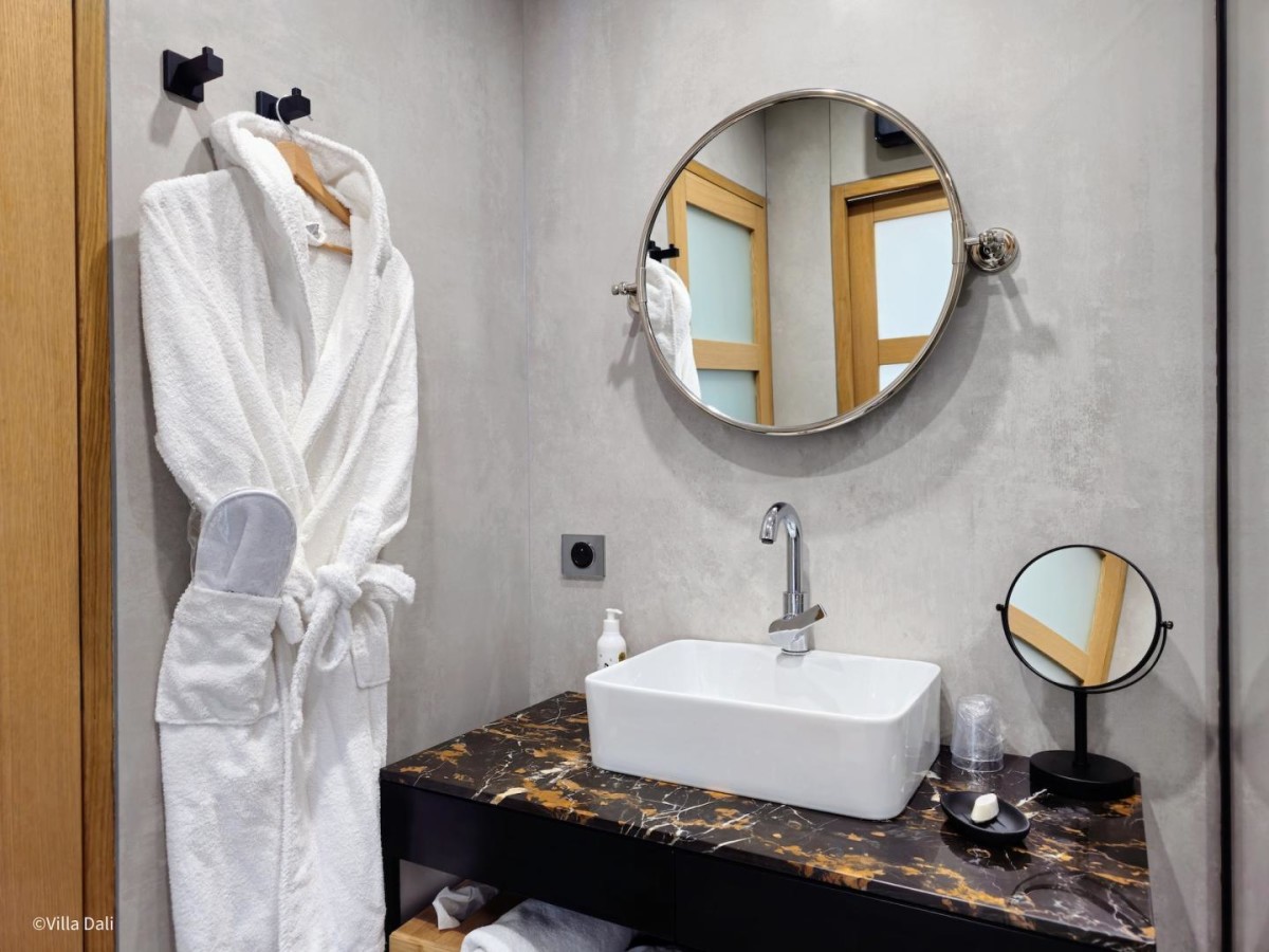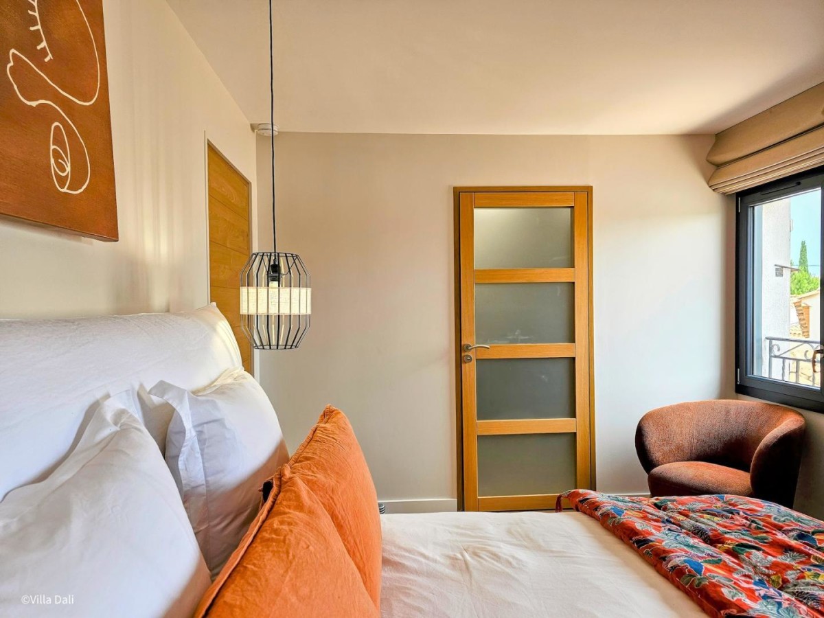 La Villa Dali est composée de 5 chambres confortables et haut de gamme avec tout le confort: un lit king-size 180x200cm, salle d'eau privée avec douche WC, TV, WIFI, climatisation réversible, mini-bar, coffre-fort, plateau de courtoisie, machine à café et penderie. 3 chambres sont situées au RDC et 2 chambres à l'étage.
