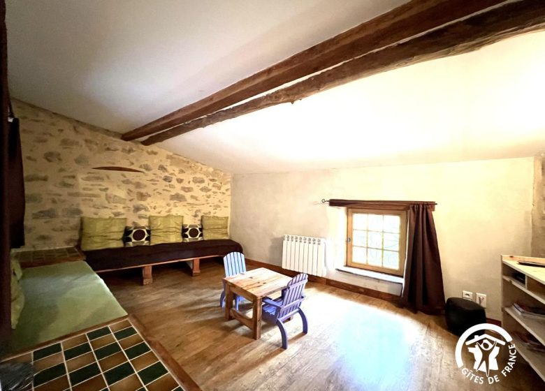 Cette belle maison de caractère en pierre est composée au rez de chaussée: d'un séjour-cuisine et salon avec cheminée-insert (hifi), une chambre donnant côté jardinet(1lit 140). Salle d'eau douche lavabo, Buanderie, WC. A l'étage, vous y trouverez 3 chambres : 1 chambre avec 2 lits 90, une autre avec 2 lits 90 modulables en 180, et la dernière avec 1lit 140 et 1 lit 90 et Lit BB. Ensuite, 1 WC et Salle de bains avec WC et douche. Un espace détente avec bibliothèque et coin TV DVD. Un grand jardin ombragé et fleuri est à disposition ainsi qu'une cuisine d'été barbecue et pergola. Balançoire à disposition également.