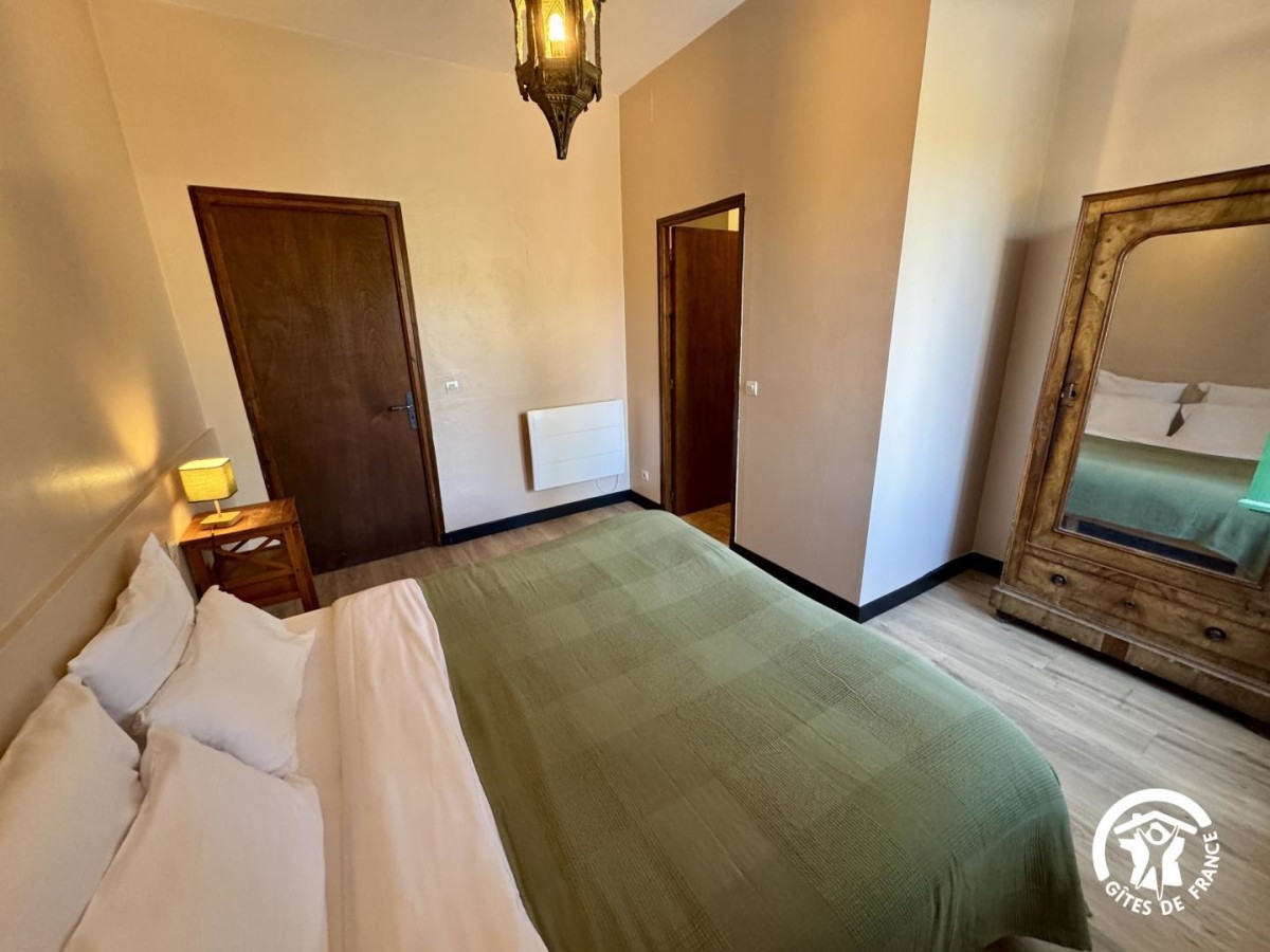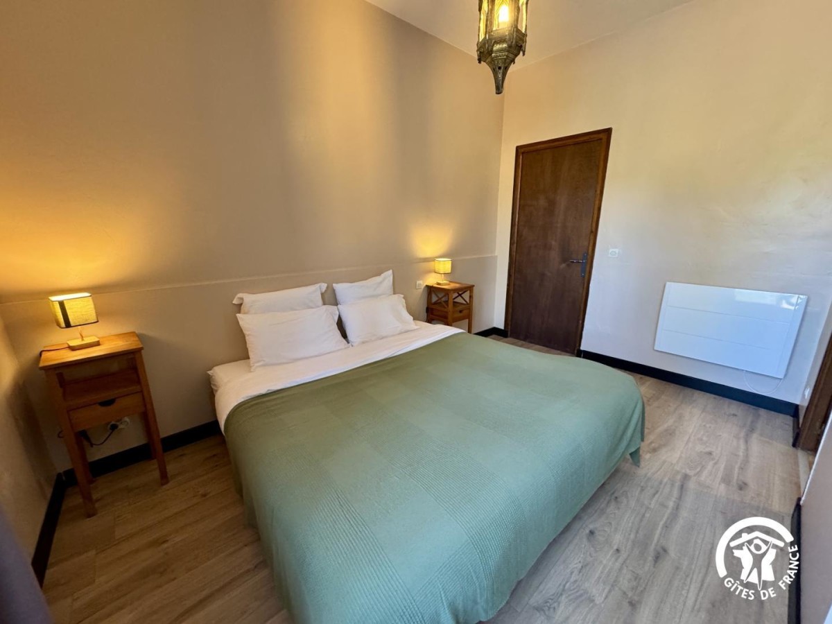 À l'intérieur, le gîte offre un espace de vie lumineux et fonctionnel avec séjour-cuisine équipé comprenant un canapé convertible, une télévision et une table à manger. La cuisine dispose de tout le nécessaire pour un séjour en autonomie : micro-ondes, four, réfrigérateur-congélateur, lave-linge et cafetière à filtre. Le coin nuit se compose de deux chambres confortables, chacune équipée de deux lits 90x190 cm modulables (possibilité de les rapprocher en lit double) et d'une salle de bain privative attenante avec baignoire et WC, garantissant confort et indépendance à chaque occupant.