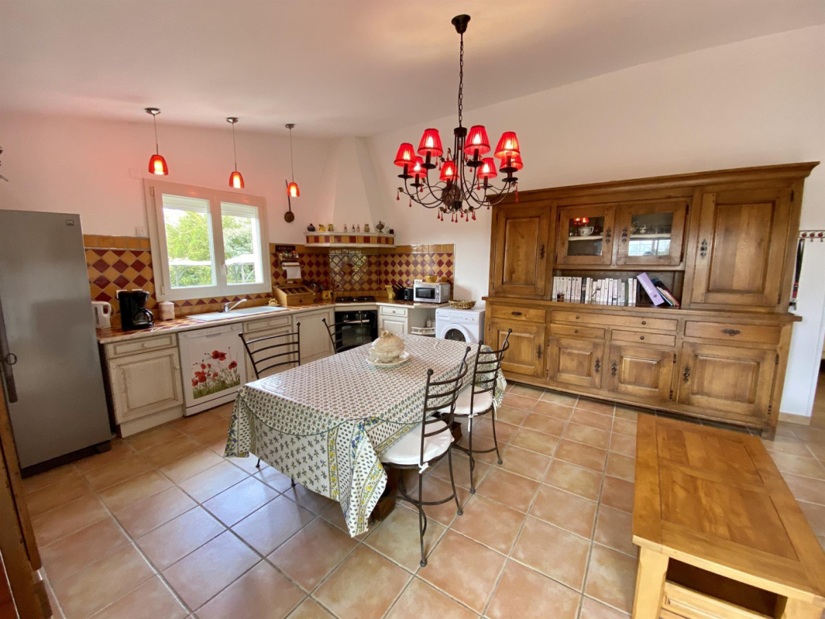 _Un séjour avec cuisine ouverte donnant directement sur la terrasse, la cuisine est équipée (plaque gaz, four, micro-onde, cafetière classique),