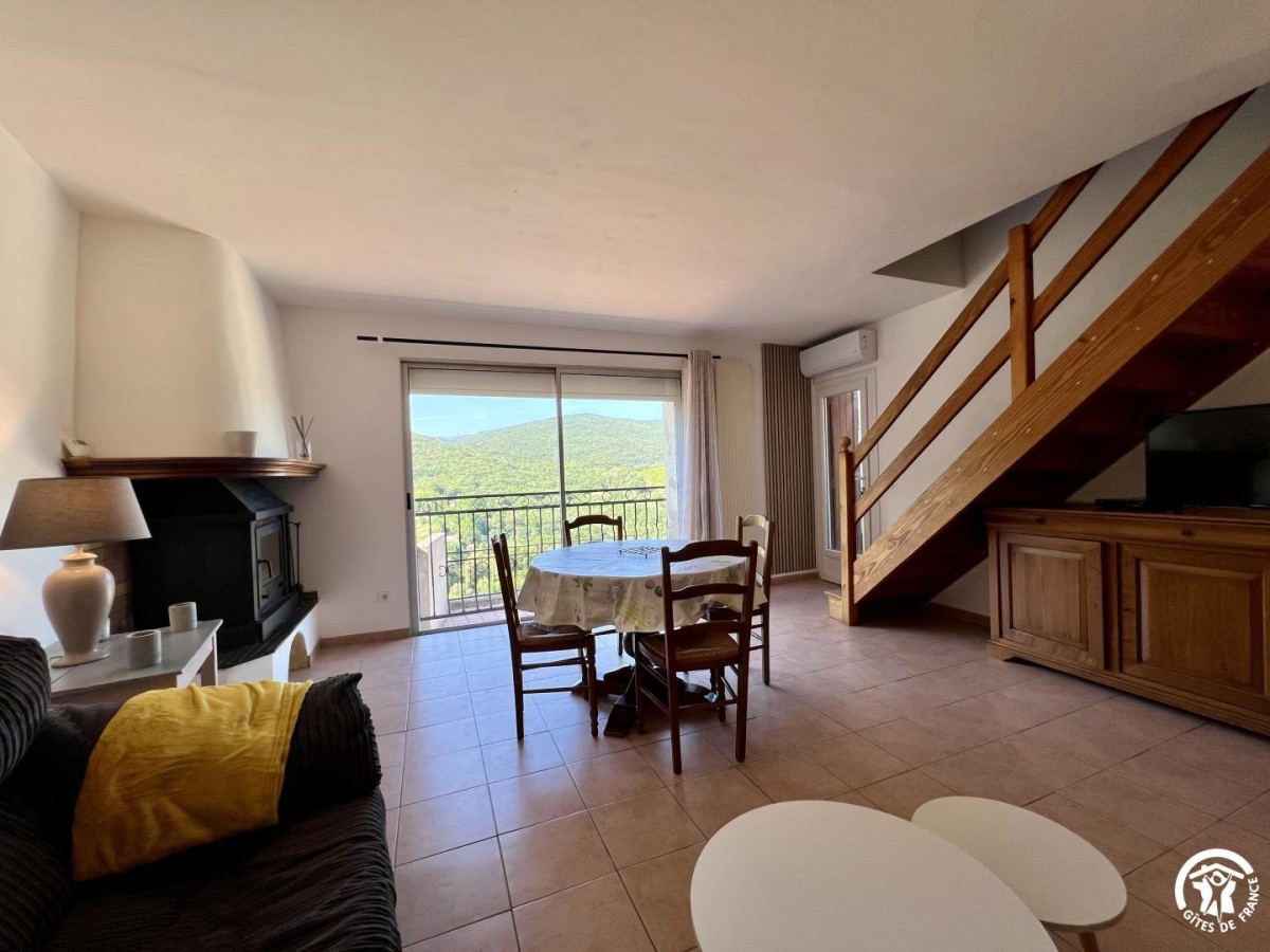 -Au rez de chaussée une cuisine, une salle à manger et salon climatisée avec des vue panoramiques sur les Corbières, le tout donnant sur la terrasse.