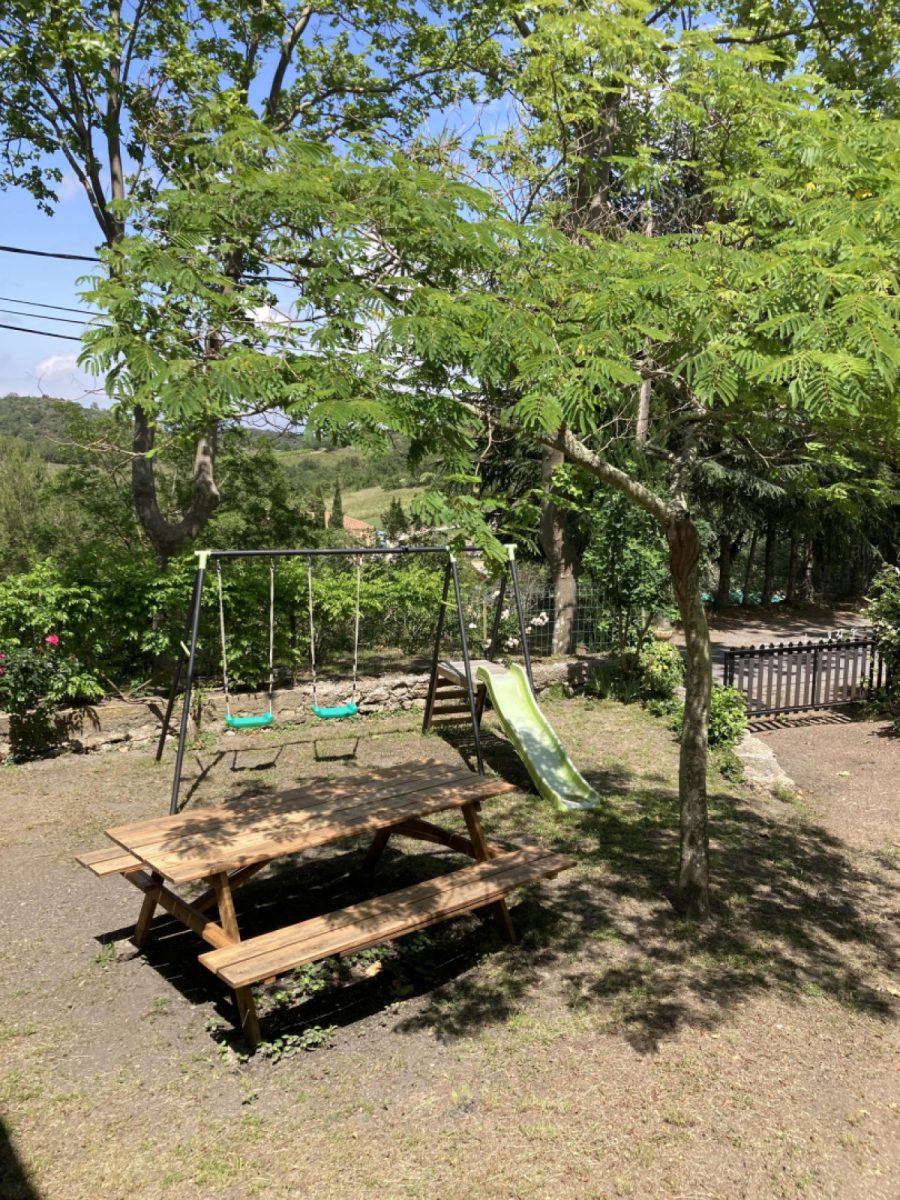 À l'extérieur, vous bénéficiez d'un terrain clos et proposant un portique pour enfants, agréable pour profiter pleinement du climat des Corbières. La terrasse en pierre, le salon de jardin et la plancha vous invitent à des moments de détente après vos journées d'exploration.