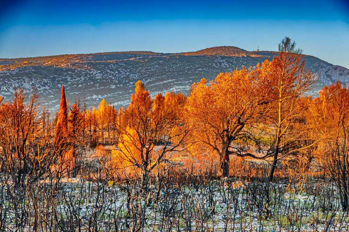 Sur les zones impactées, la nature reprend doucement ses droits. Les premières pousses apparaissent, l’automne a déposé ses couleurs chaudes sur un décor encore marqué par la tristesse, offrant un contraste saisissant entre cicatrices et renaissance.
